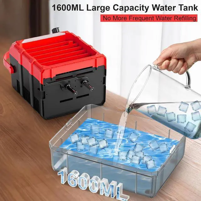 Efficient Water Misting: Upgraded with dual spray nozzles, max 200ml/h fan misting volume can cool you down in seconds. Also with 1600ml large water tank, the misting fan can last 8 hours cooling periods, bringing you cool and comfort