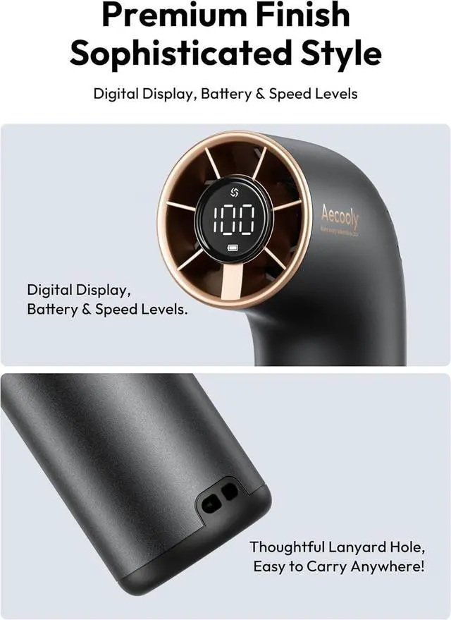 • Mini r: Aecooly Aero Ultra Handheld Fan features a compact r-shaped design, offering a comfortable and ergonomic grip thats perfect for outdoor settings. Its sleek, modern form fits naturally into outdoor activities like picnics, hiking, or days at the beach, while delivering powerful airflow for quick cooling. Designed for both function and style, it enhances your outdoor experience with effective performance and subtle elegance