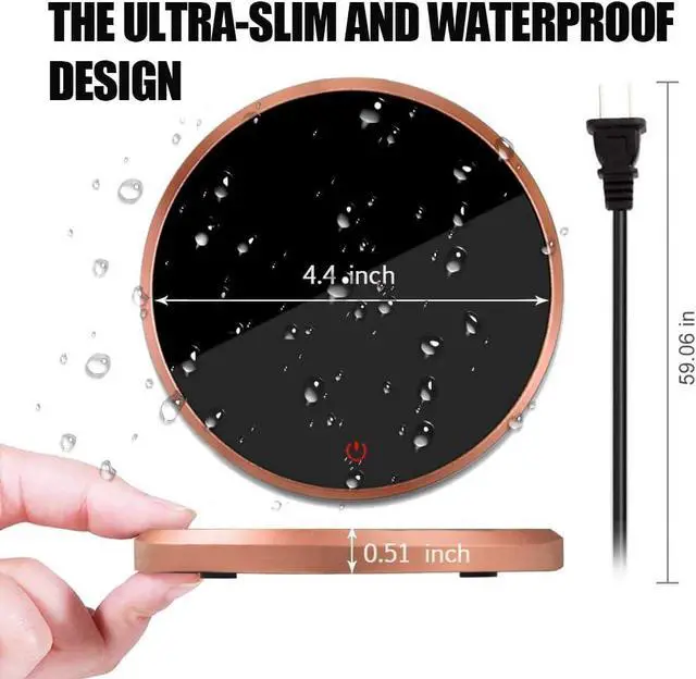Waterproof DesignThe beverage warmer is made of tempered glass and aluminum alloy without security concern for splashing or spilling water on the heating plate by accident and makes cleaning a breeze.