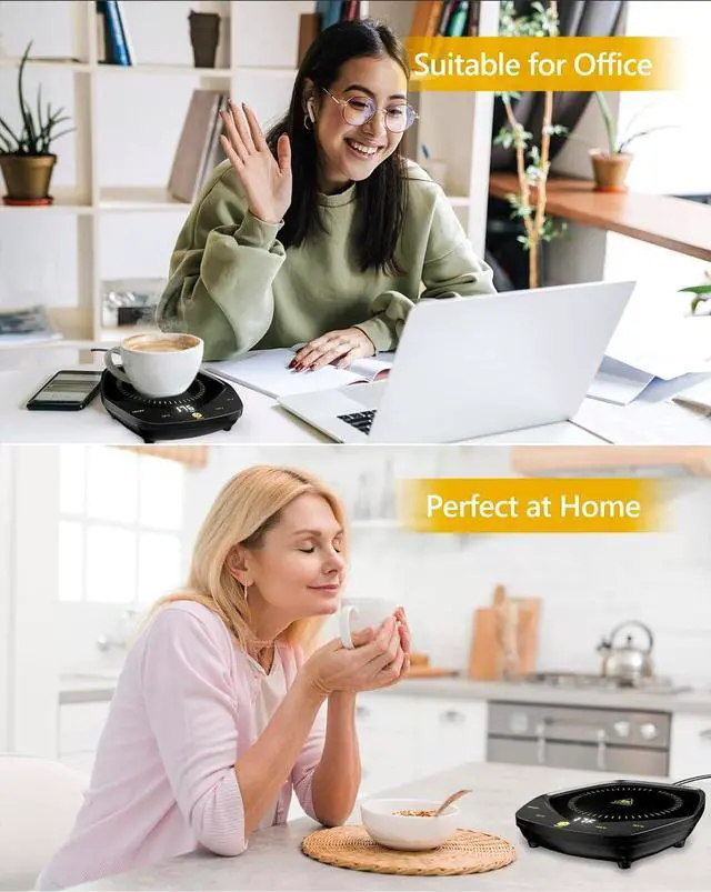 Coffee Warmer for Desk Auto Shut Off : The coffee cup warmer for desk automatically turns off after 4 hours by default, but you can customize the shutdown time from 2 to 12 hours. It takes only seconds to heat your coffee to perfect temperature