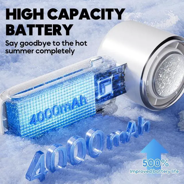 Ultra long standby: The fan is equipped with a 4000mAh high-capacity battery, ensuring long-term use. It can be recharged and reused, with an operating time of 2 to 6 hours (depending on the selected wind speed).