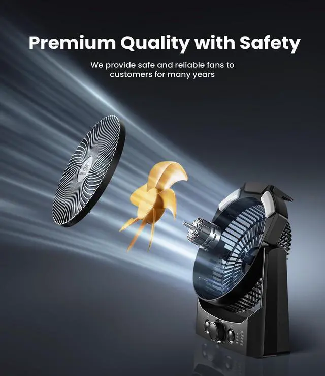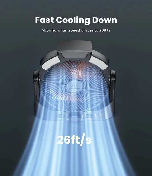 Sturdy Housing & Anti-drop: The shell of the camping fan is made of sturdy and durable ABS material, which has good anti-slip and impact resistance, you can confidently use it in various outdoor occasions; In addition, it is also suitable for indoor use as a desk fan; The cool punk style appearance makes it a beautiful artwork on your desktop at the same time