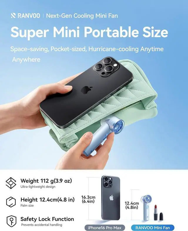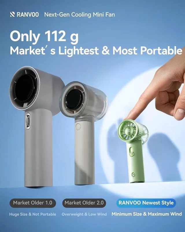 Smaller & Lighter than Your Phone - Your Travel Essential: With size of only 4.7"x1.5"x1.8" and weighing just 112g, this portable fan for travel is ultra-light and fits comfortably in your pocket. When you're halfway up the sun-scorched trail and sweat is blurring your visionall you need to do is take it out, the 360° chill will cut through the sticky air,reviving your summit-bound spirit !