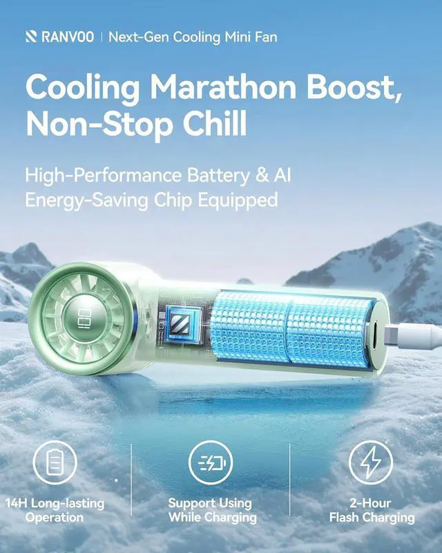14 Hours of Endurance - Uninterrupted Cooling: Powered by high-efficiency lithium battery, the portable handheld fan provides up to 14 hours of continuous use. Whether it's a music festival, conference or camping trip, it ensures uninterrupted cooling. With Type-C fast charging support, the battery powered fan can be charged via power banks, laptops or car charger, and you can even use it while charging.
