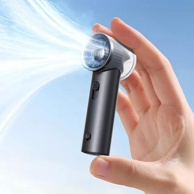 Safe & Stylish - The Thoughtful Present: Winner of Japanese Design Award, this mini fan combines elegance and innovation with its sophisticated matte finish and contoured ergonomic handle, ensuring a premium tactile experience and effortless portability, making it ideal for everyday use or as a thoughtful present.. It also comes with a high-definition digital display that reveals real-time wind speed and low battery alerts (below 10%).