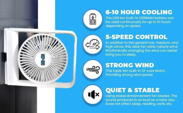 6-10 HOUR COOLING: The USB fan built-in 12000MAH battery can be used continuously for up to 10 hours depending on speed.