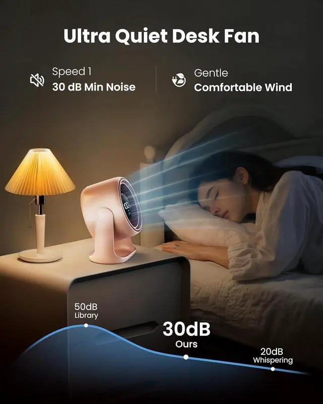 Ultra-Quiet & Energy-Efficient Office Fan: Designed for focus and relaxation. Our quiet fan technology with a brushless motor and noise-reduction structure operates as low as 30dBquieter than a library whisper. Optimized power use makes this energy efficient desk fan perfect for light sleepers and shared spaces