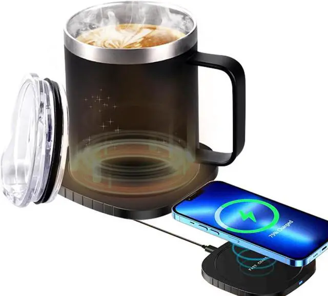 2 IN 1 Function: Coffee mug warmer built in receiving coil, it's aslo charger compatible with for IOS 13/12/12 Mini/11 Pro/for XR/XS/X/8/8 Plus, for S20/S10/S9/S8/Note 10, and other smart phone supporting charging.