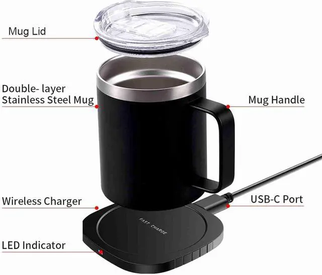 Thermal Insulation and Safe Thanks to the inner core induction heats up, the cup body and charger base do not get hot. The temperature control chip has an overheating protection, safe and comfortable to use.