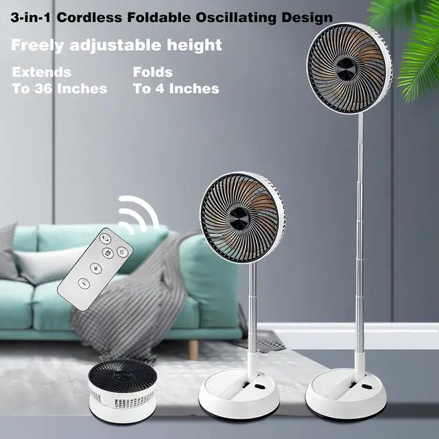 8 in Portable Folding Fan: unique foldable design portable small size 8 inch in diameter adjustable height - 4" when folded and 40" full stretched easily meet your different needs for height. Lightweight easily moved & carried could be used as a indoor fan such as desk fan table fan pedestal fan floor fan and stand up fan used as a outdoor fan such as travel fan camping fan.