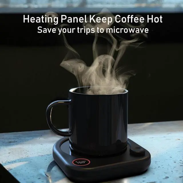 Easy to UseSimply plug it in, press the switch, and place your mug on the warmer. That's it! With just one button, you can control the temperature settings and timer. Our mug warmer heats up instantly, keeping your coffee hot from the first sip to the last. Enjoy your coffee without needing to reheat it in the microwave.