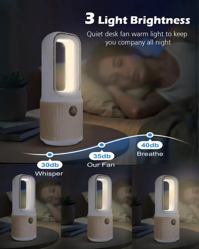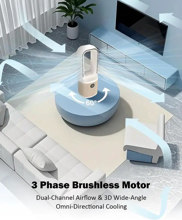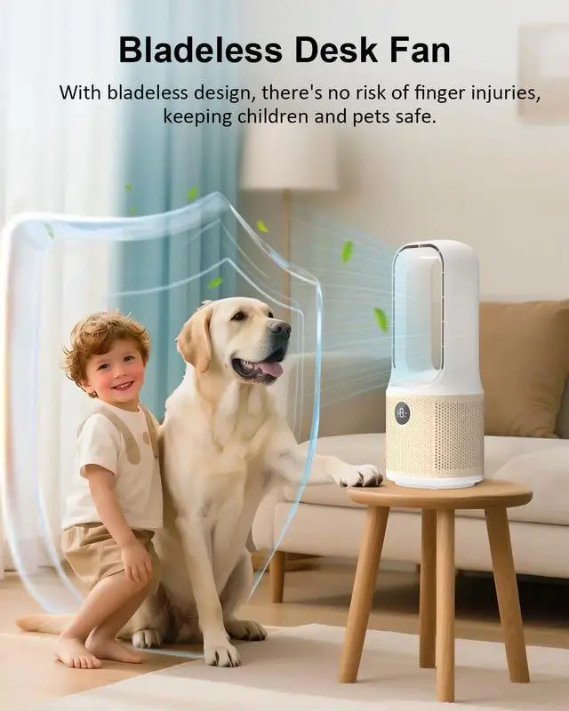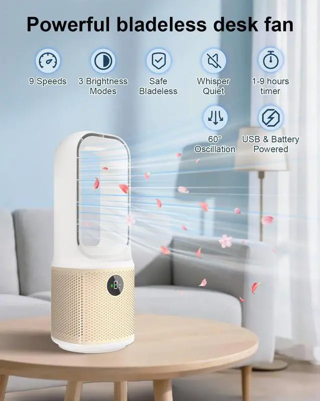 Futuristic Bladeless DesignCompared to traditional fans, this bladeless desk fan combines cutting-edge bladeless technology with a high-efficiency 3-phase brushless motor, eliminates hazardous blades, creating a child-safe and pet-friendly airflow solution with its smooth, enclosed design and easy cleaning. Built to last 3X and delivers 30% more energy-efficient cooling than traditional fans while maintaining silent operation, enjoy ultra-durable performance and zero maintenance work or relaxation