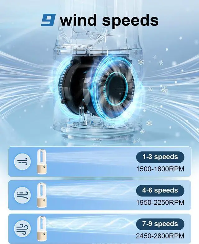 9 Wind Speed & 3 LED level SettingsOur desktop fan offers 9 adjustable speed settings, from gentle breezes to a powerful 2800 RPM turbo boost for instant cooling. Easily adjust the wind speed you want with push-button controls. Built-in Led light and 3 levels of brightness adjustment doubles as a night safety guide (preventing nighttime falls) and a mood enhancer, casting warm illumination