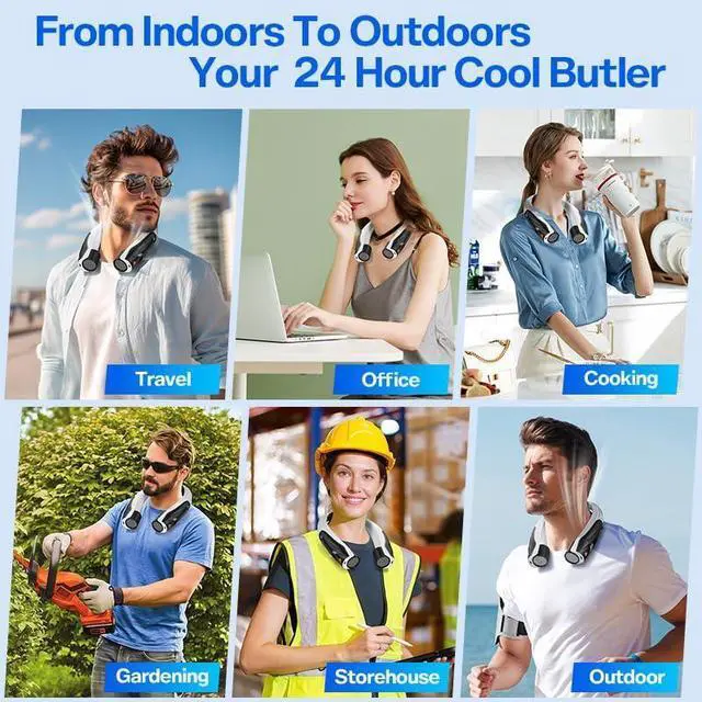 LIGHTWEIGHT AND HANDS-FREE: The personal fan neck featuring an ergonomic design, perfectly in the curved position of the neck, completely free your hands while staying cool. It's compact and foldable design ensures ultimate portability, simply place it in your bag or wear it around your neck, and you're ready to go. Whether commuting, shopping, traveling, or working out, it provides instant cooling relief whenever you need