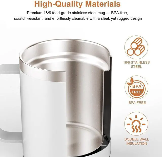 High-grade Material: Crafted from food-grade 18/8 stainless steel, the mug is odor-free, scratch-resistant, and easy to clean. Its lid comes with silicone sealing ring, maximizing leak and dust resistance and heat retention