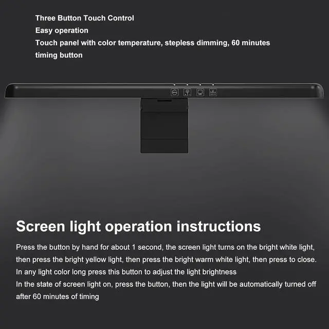 [Dimmable] Monitor lamp lets you control by touching the switch, support stepless dimming, no more control wires. Three color temperature adjustment, cold and warm light switch at will, and your eyes feel comfortable.