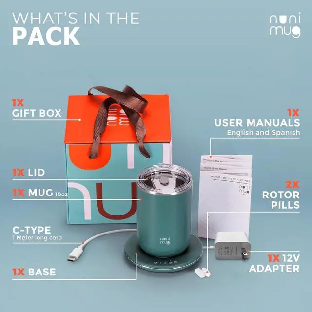 Uninterrupted Convenience - Featuring an advanced airtight lid, you can confidently take your beverage on the go without worrying about spills or leaks. Plus, we include an extra spare stirring pill with our warming mug for coffee, ensuring you always have a backup for uninterrupted stirring enjoyment!