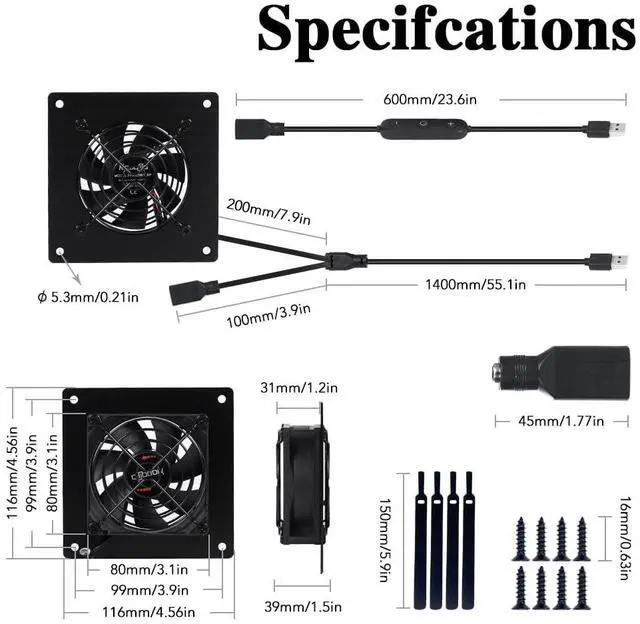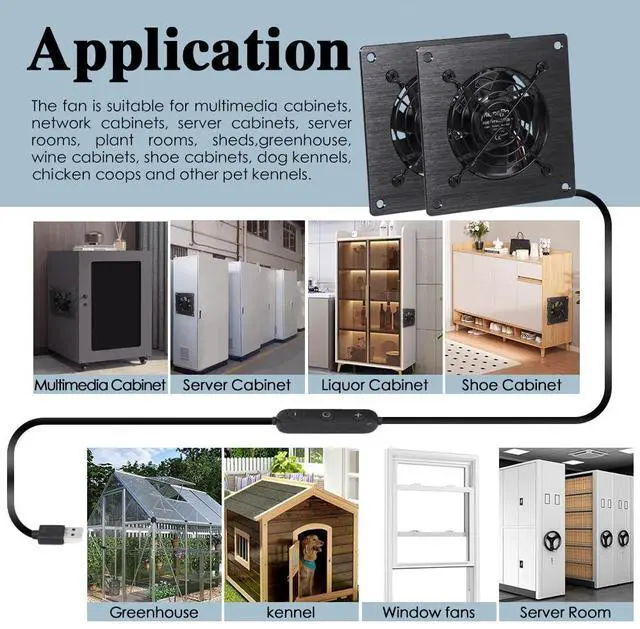 Quiet 80mm cabinet Fan: Enjoy a peaceful and noise-free cooling experience with our USB cooling cabinet fan. Designed to cool various multimedia cabinets,network cabinets,server cabinets,serverrooms,plant rooms,sheds,greenhouse,wine cabinets.shoe cabinets. dog kennels,chicken coops and electronics and components, this fan operates at an impressively low noise level of only 15dB (minimum speed), ensuring a tranquil environment while it keeps your devices cool.