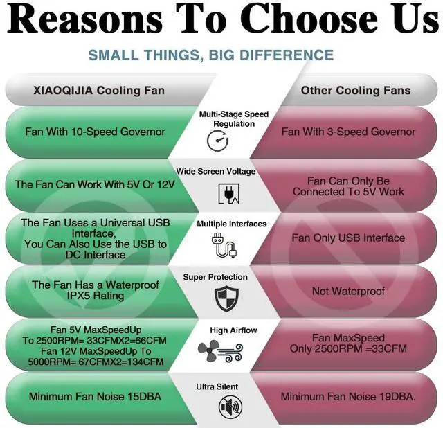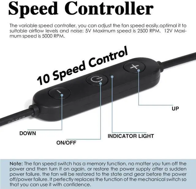 10 Speed: Take control of the airflow level with our specially designed speed controller. With 10 adjustable speeds, you can easily customize the cooling intensity to meet your specific needs. Whether you require a gentle breeze for a subtle cooling effect or a stronger airflow for more demanding applications, this fan has you covered.