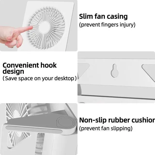 180°Tilt Foldable Stand & Hang FanThe stand of this fan for desk is 180 ° adjustable, not only on the desktop, but also can be used as a hanging fan, you can adjust to any suitable angle you want. You will always be comfortable and cool, just customize the angle and enjoy your cooling with this powerful and quiet fan.