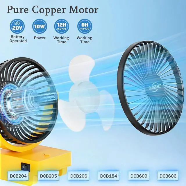 Portable Cordless FanPerfectly Compatible Our BatteryThagbrco Battery Operated Fan Compatible For 20v 60vbatteries. Connect Your Batteries Compatible For DCB204 DCB206 DCB203 DCB201 DCB207 DCB180 DCB181 Etc To Enjoy Cool Anywhere, Anytime!