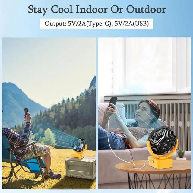 Two-Port Charging Can Charge Your Mobile Devices, Whether You'Re Out Camping Or Working.(Better Safety) This Fan Can Not Be Charged Directly, You Should Charge The Battery First, Then Plug In Fan To Use!