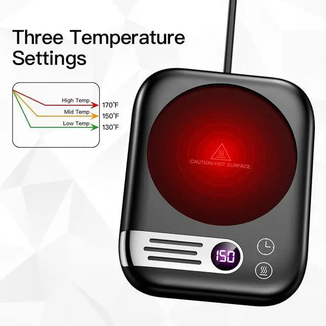Three Temperature Settings: You can choose from three temperature settings (130°F, 150°F, 170°F) to keep your beverage at your preferred temperature.