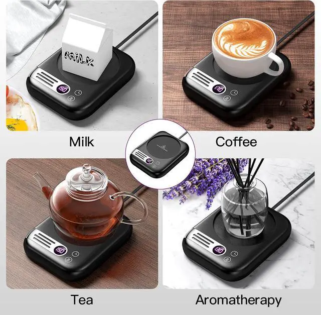 Enhanced Base and Wider CompatibilityThe upgraded aluminum alloy base heats your coffee faster, and the larger 3.75-inch (9.5 cm) plate fits various cup types, including cans, cartons, bottles, and it can even warm aromatics. It's a great gift option too.