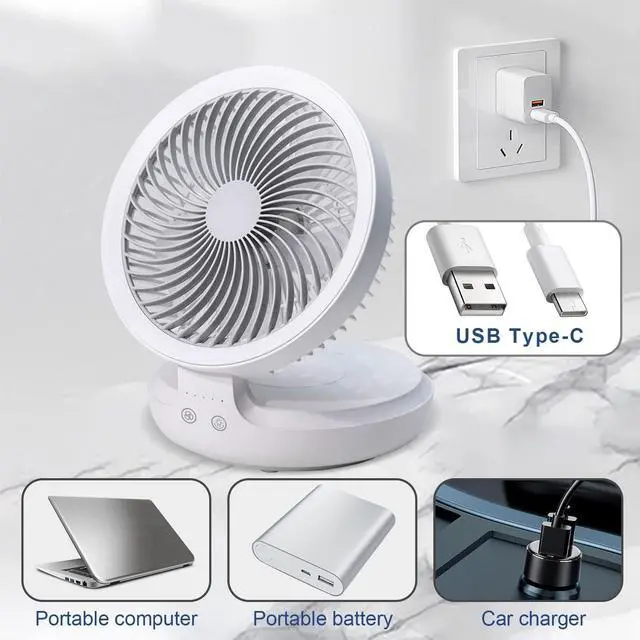 [ Rechargeable Battery Operated Fan ] This rechargeable fan built-in 4000 large capacity battery,5V/1.5A, just 3-4 hours full charge. Comes with a nice long USB-C charging cable, you can get a power supply from the laptop, power bank, or other USB devices that allow the USB small fan never shut down and keep you cool the whole day or you can use the battery fan when you are cooking, this cordless fan will you cool in the summer heat.