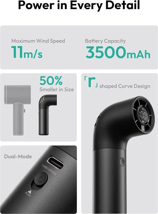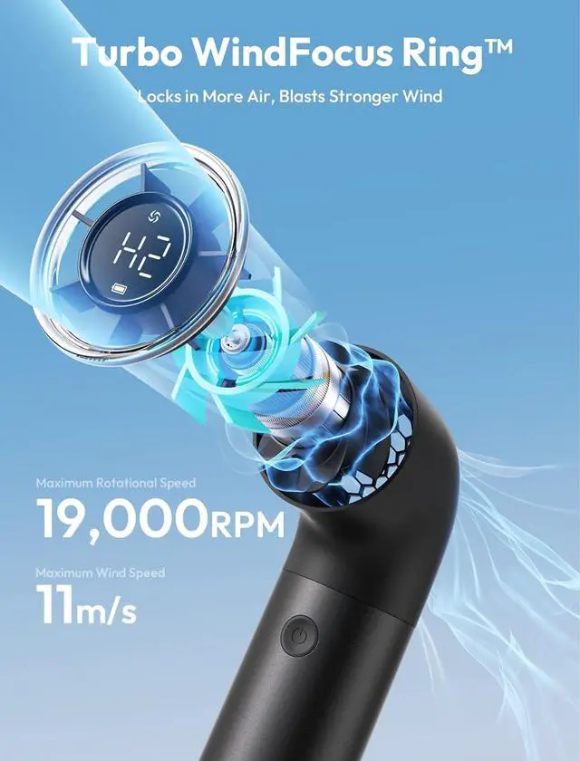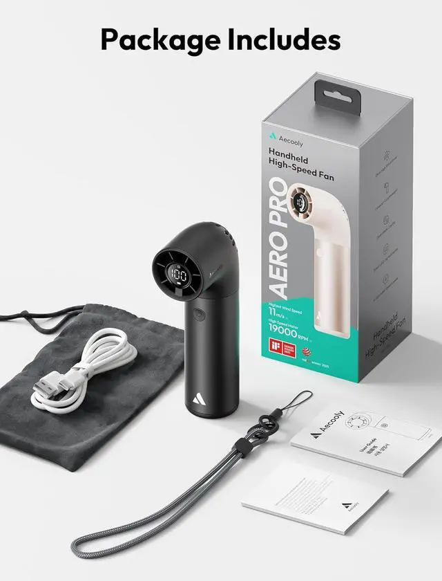 High Speed: Aecooly Mini Portable Fan powered by a robust Turbine Brushless Motor offers exceptional cooling performance with a maximum rotation speed of 19,000 RPM and wind speeds up to 13 m/s. It rapidly circulates powerful airflow, providing quick and efficient cooling, whether you're facing intense summer heat or seeking relief after exercise. The strong, invigorating breeze cools down your environment instantly, offering refreshing comfort that cuts through the heat