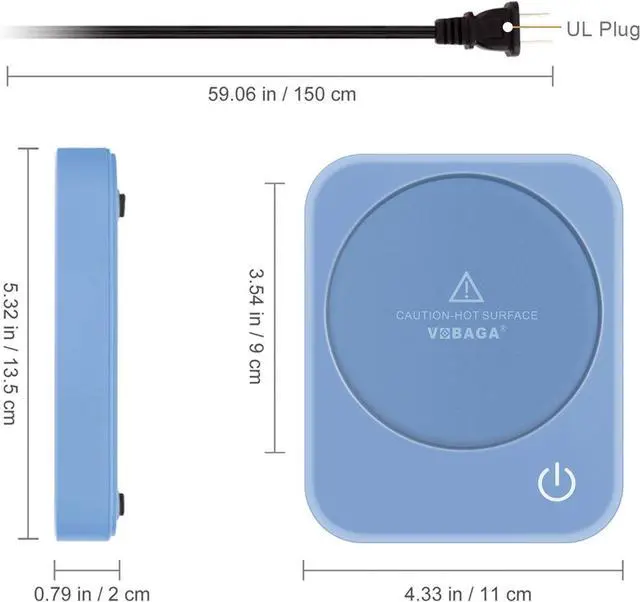 Splash-proof & Large Heating Plate: The heating plate adopts sealed-insulation technology to prevent splashing water, which also fits most standard mugs well. The 59-inch plug cord will fits on your desk perfectly. Tips: Choose flat-bottom and thin-wall mug so that it can have a good connection to the warmer.