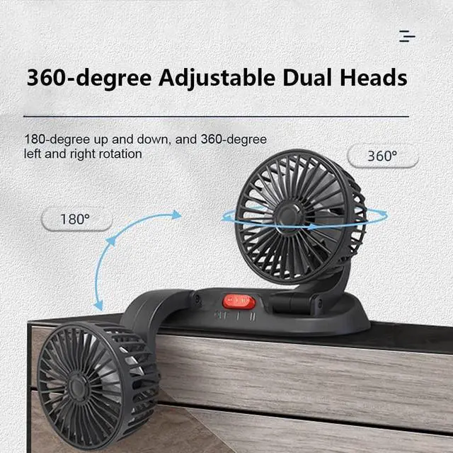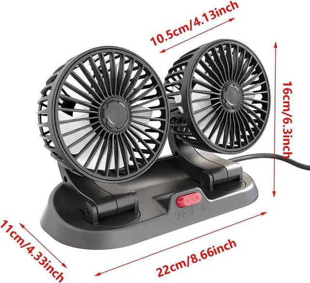 quality Material: The double-headed car fan is made of quality material, which is not easy to be damaged, resistant to high and low temperature, wear-resistant and sturdy, and has a long service life.