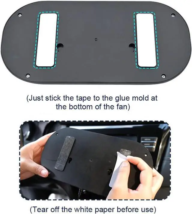 Easy to Use: Just stick the tape to the plastic shape at the bottom of the fan, and then put it on the installation position to hold it firmly. At the same time, the design of the detachable front net is convenient for cleaning.