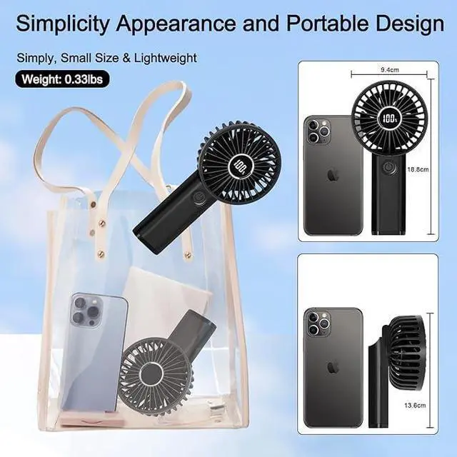 Staying Cool On-The-GoThe size of this mini handheld fan is a game-changer. When fully folded, it is only 5.5 inches tall and weighs only 180g, Its compact and lightweight design fits perfectly in the palm of your hand, bag, and your pocket, making it incredibly convenient for those scorching days when you need a quick cool-down. This handheld fan can be a trusted companion for staying cool and comfortable, whether you're attending a sporting event, on a summer road trip, or just lounging by the pool.