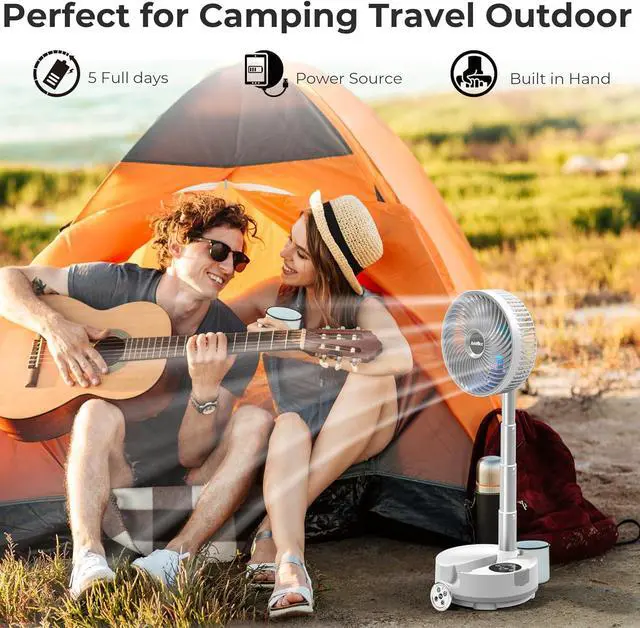 Easy to Carry: Still using a clunky old fan that needs to be plugged into the wall? Switch to a wireless portable fan that keeps you cool on the move! Our foldaway fan is lightweight yet sturdy, with adjustable height rang from 5.6 to 22.8 inches. It's 5.62*7.87 inches when folded, easily fit into your bag. Plus, it comes with a built-in handle for easy carry wherever you go - ideal for travel, camping,outdoor