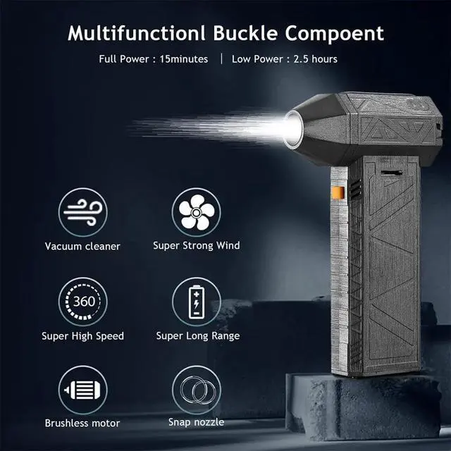 Powerful Jet FanUsing a brushless DC high-speed motor with a maximum speed output of 130,000 RPM, it is capable of generating super strong wind speeds of up to 52 meters per second.
