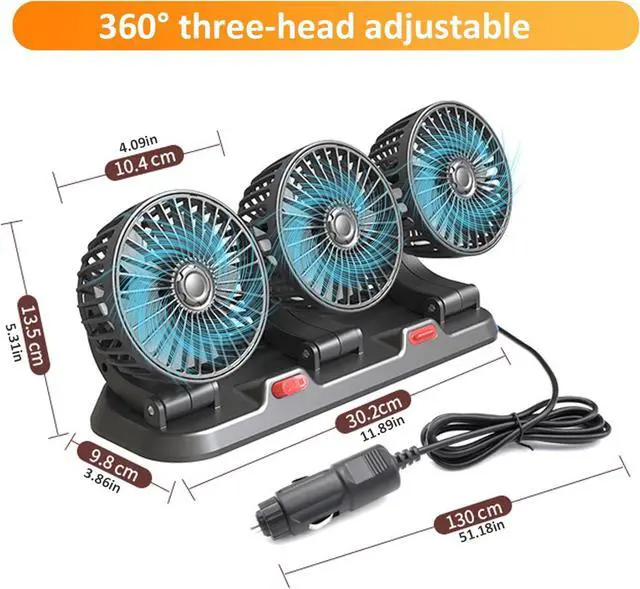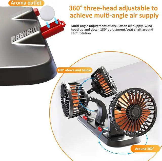 360° Rotating Design: Each fan head can rotate 360°, offering complete flexibility in directing airflow. This versatile design ensures maximum cooling efficiency, allowing you to target specific areas within your vehicle for personalized comfort.