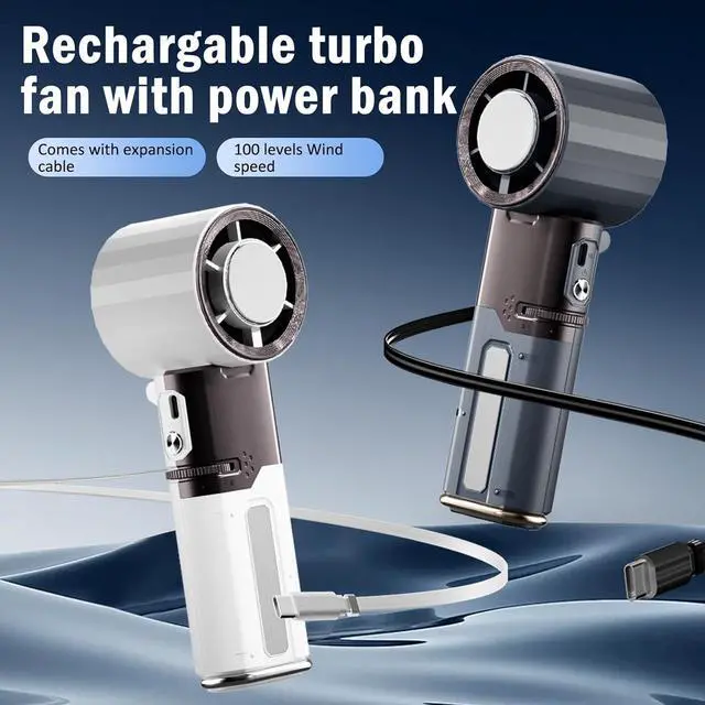 [10,600+ RPM Turbo Power Dual-Airflow] Utilizing aviation-grade turbo fan technology, this portable handheld turbo fan generates an intense 9m/s wind speed, covering a 2m range2x stronger than standard blade fans. Experience instant heat dissipation with penetrating airflow for wide-area cooling and efficient than traditional fans