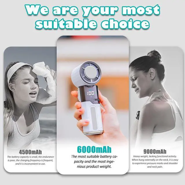 [3 IN 1 Multi-Purpose Design] Adjust to a maximum 135° tilt angle to use as a desk fan or hang around your neck as a neck-mounted fanversatile cooling for every scenario
