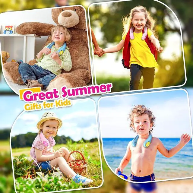 Hands-free, Kids Summer Essentials! The neck fan design allows your children to free their hands better when playing, and are essentials for kids going to the beach, summer camp, studying, sports, traveling, and so on.