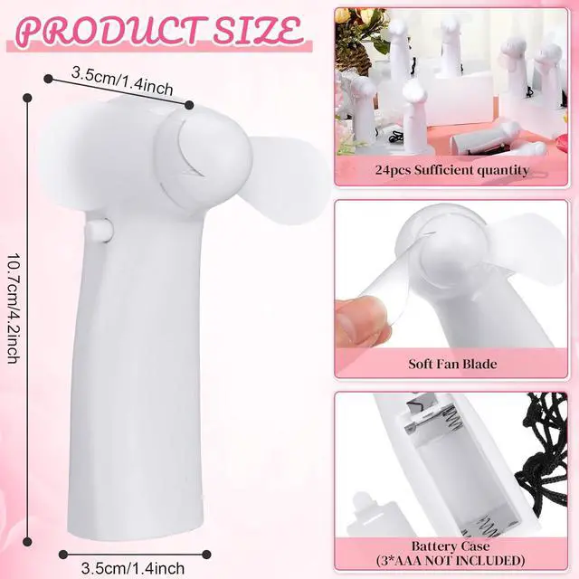Package of 24 Suitable for Events: our package includes 24 portable hand fans, making them ideal for weddings, concerts, outdoor events, or summer parties; It's the ideal way to keep your guests cool and comfortable in hot weather; Please note the battery is not included in the package; Installing the battery with the positive and negative poles reversed may cause overheating and stop working