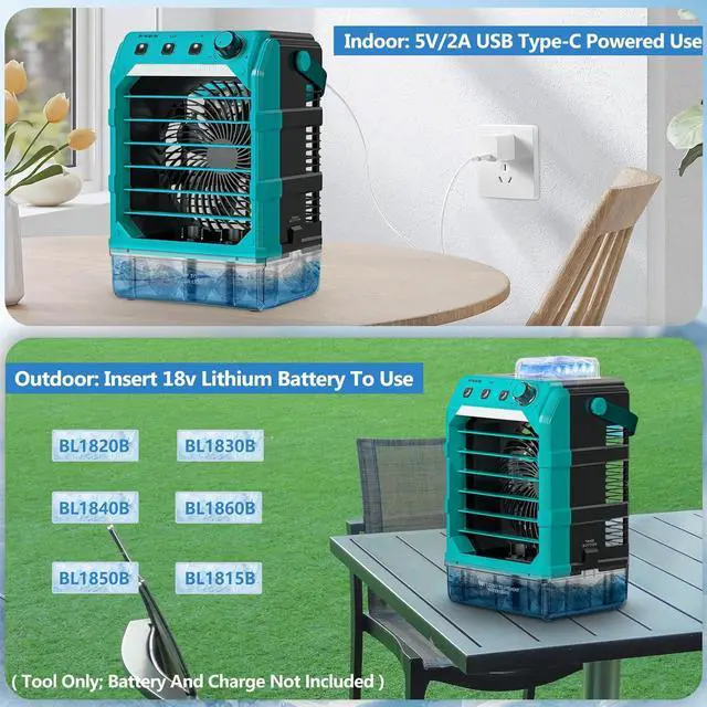 Camping Fan Battery Powered: Uniqwamo battery powered fan compatible for Makita 18V li-ion battery(battery not included), portable fan with mist work for BL1860 BL1850 BL1850B BL1840 BL1840B BL1830 BL1830B BL1815B,etc., great for outdoor activities, ensuring cool comfort wherever you go