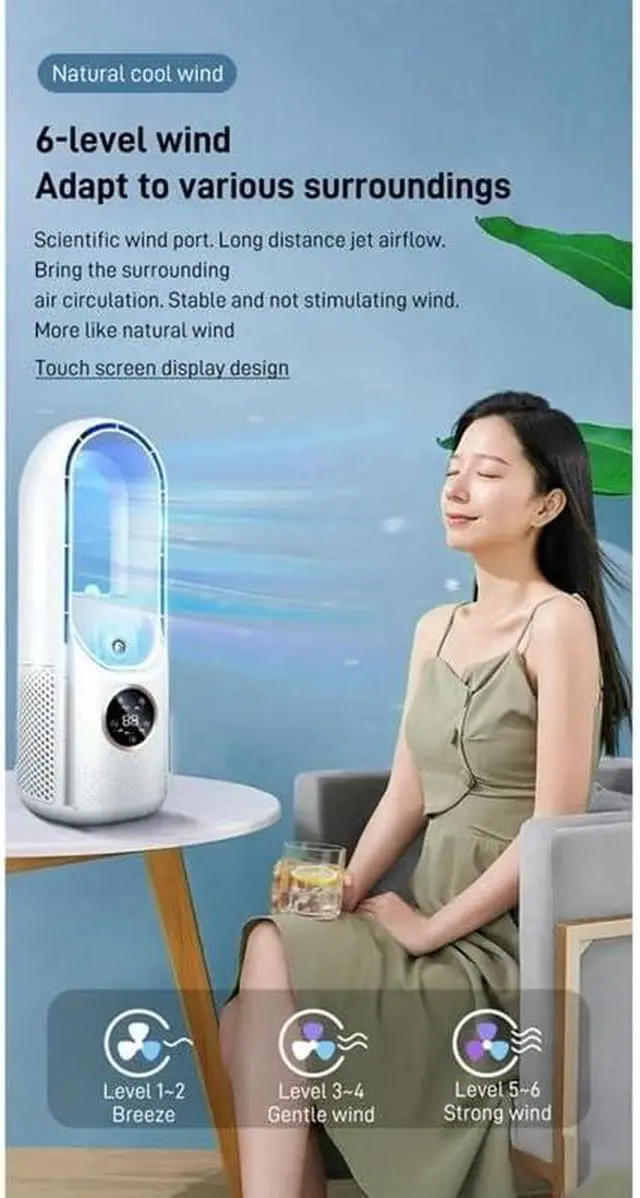 Six Wind Speeds: The Rechargeable Bladeless Table Fan can provide you wanted cool feeling by touching the button in turn to the low, medium and high, enjoying comfortable cooling air circulation in any small or medium space.