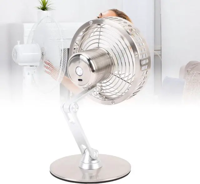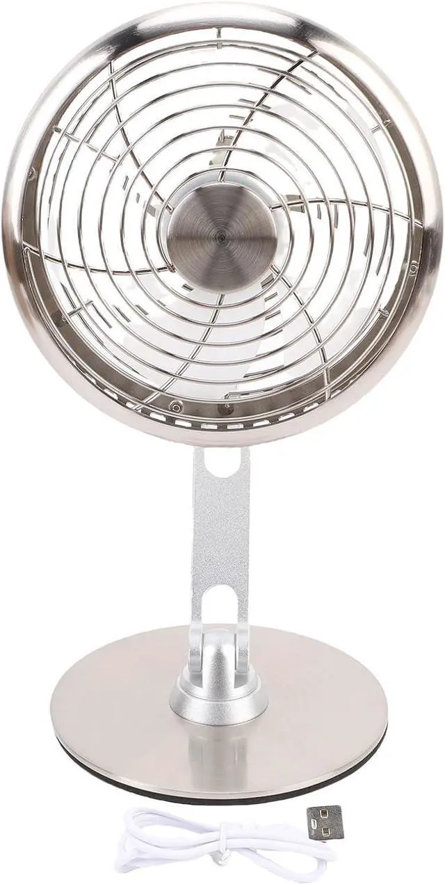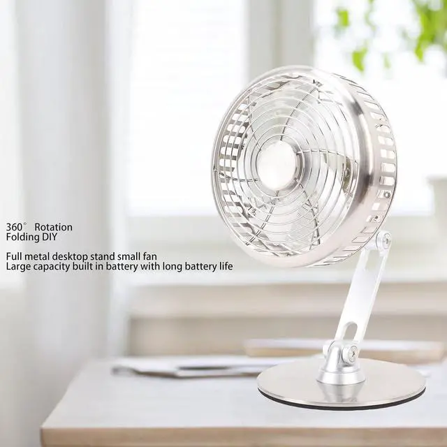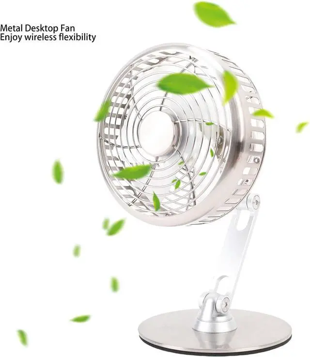 Mumusuki USB Desk Fan 3 Speed Adjustable Quiet Metal Retro Desktop Fan 360 Degree Rotation Rechargeable with 2200mAh Battery for Office Home Bedroom (Silver)