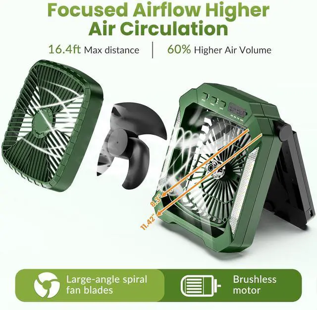 Massive Cooling Power & Long-Lasting Battery: Enjoy powerful airflow from the 11-inch fan with three adjustable speeds (high, medium, low). The built-in 26800mAh battery provides up to 58 hours of runtime on a single charge (low speed), ensuring you stay cool all day and night