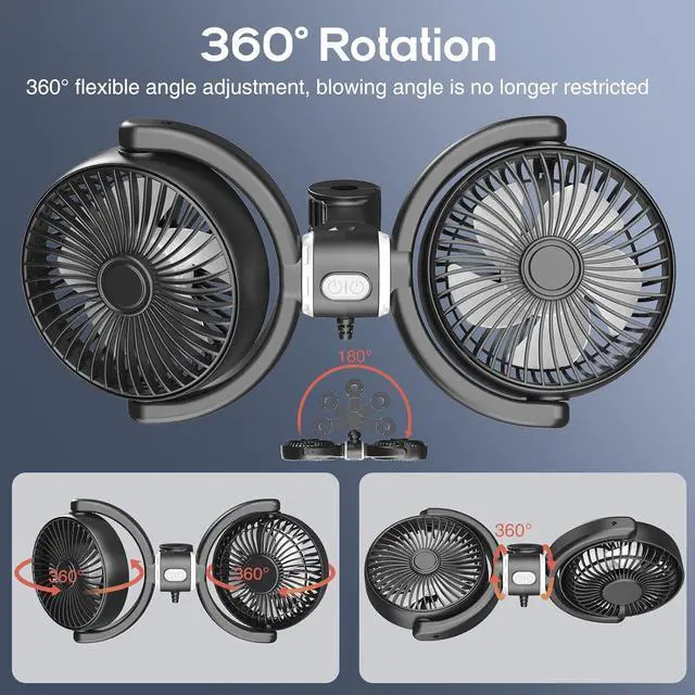 360° adjustable for Full Coverage: With 360° horizontal and vertical rotation, this portable car fan ensures every corner of your vehicle stays cool. Easily adjust the angle to direct the airflow where you need it and enjoy all-round coolness