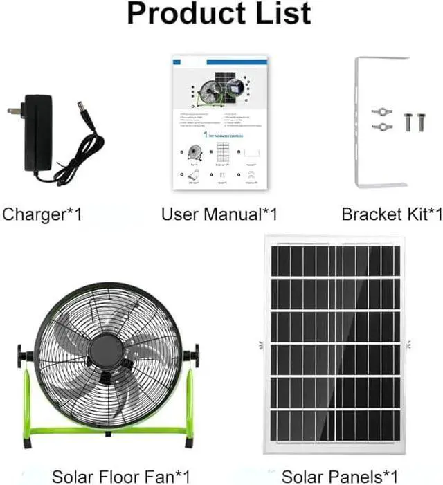 14-Inch Portable Floor/Table Fan Rechargeable Fan with Solar Panel & AC Charger Dual Input - Ideal for Indoor (Home & Office) & Outdoor (Camping, Fishing) Use