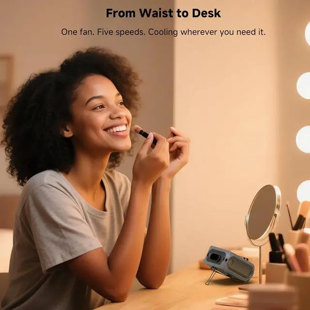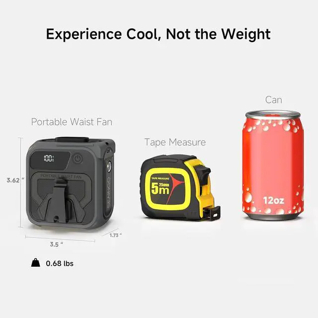 SEAINGO 5-in-1 Powerful Portable Fan: Waist fan, neck fan, desktop fan, handheld fan, and 10,000mAh power bank - all in one ultra-versatile device. Independent fan on switch and light control buttons keep operation simple for effortless all-day use, indoors or outdoors.