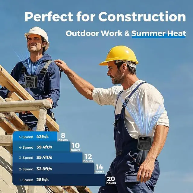 All-Day Cooling with Smart Display: Up to 8 hours of powerful airflow on max settings with a high-capacity 10,000mAh battery. LED screen shows wind speed and battery level at a glance. Fully recharges in just 45 hours.