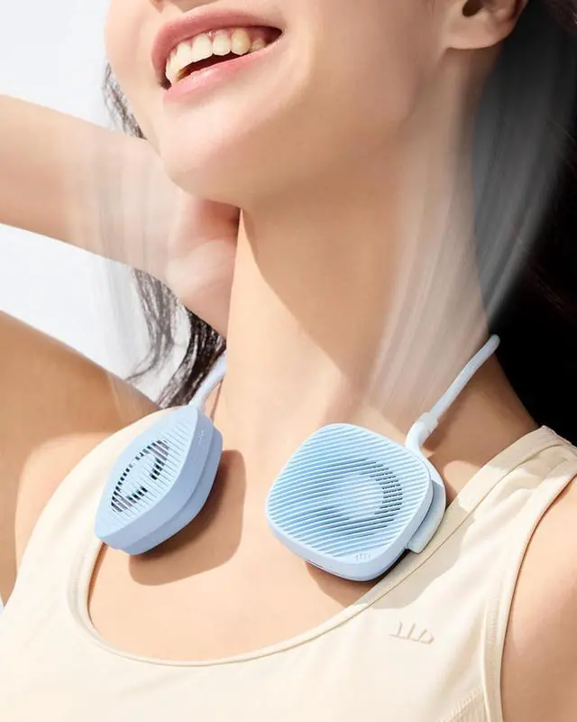 Ultra-Portable Neck FanWeighing only 3.9oz (110g) with 0.7in slim profile, this portable neck fan slips effortlessly into pockets or crossbody bags, perfect for commuters rushing through subway crowds , hikers trekking mountain trails, or parents juggling daycare runs. No more bulky fans straining your neck or cluttering your backpack.